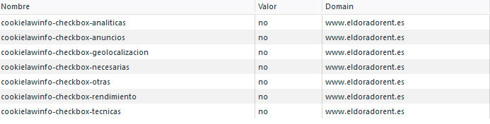 - Otro tipo de información de determinadas cookies específicas.